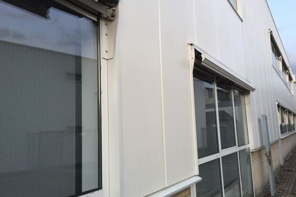 The damage to this panel at a business premises in Bunnik was so extensive that we chose to exchange the panel in consultation with the client. Fortunately, this was constructively possible and the panel was also available from the panel manufacturer. After replacing, we only had to spray away a small color difference and the facade was as good as new again!