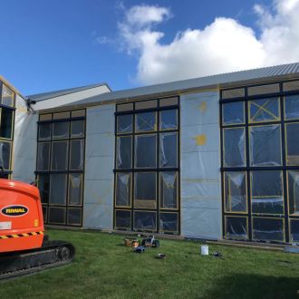 Van Heemskerk specialises in sheeting and sandwich panel repairs. However, we are also skilled in repairs to aluminium or synthetic frames and commercial doors. We can also respray frames and doors that suffer from discolouration.