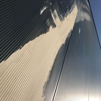 No two colours or buildings are the same. Even if they have the same RAL code or name, every new coil will have a different colour or appearance. This is because most pigments for paints and lacquers are derived from nature, so their properties may differ from shipment to shipment. This phenomenon has an extra dimension in case of metallics, which professionals call “flop”. Flop refers to the way the metallic particles are positioned on the surface. This can result in a darker or lighter effect. It's not unlike a high-pile rug: the colour doesn't change, but you get lighter or darker spots depending on the position of the piles.